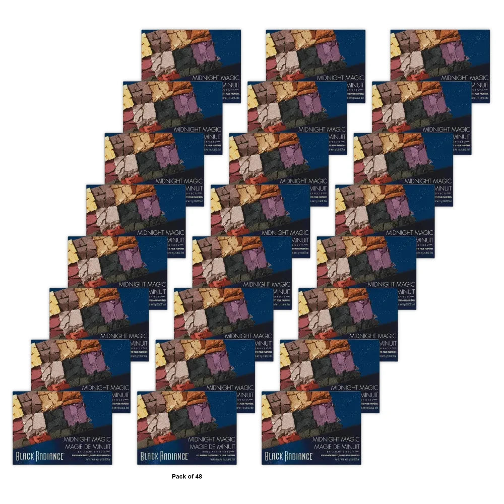 Product Name: Black Radiance Brilliant Effects Eye Shadow Palette – Midnight Magic – 0.38 Oz (Pack of 48)UPC: 077802203229Description:The Black Radiance Brilliant Effects Eye Shadow Palette – Midnight Magic delivers rich, dramatic shades inspired by deep, sultry nighttime tones. Each palette features a curated selection of highly pigmented eyeshadows designed to create smoky, bold, or glamorous looks. The smooth, blendable formula ensures effortless application and long-lasting wear, making it suitable for all skin tones. This pack of 48 is ideal for retailers, makeup artists, salons, and bulk buyers.